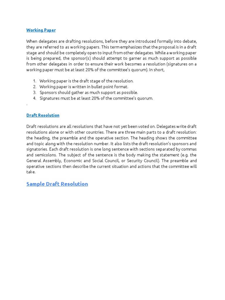 How to write a mun resolution guide working papers, commonly precursors to draft resolutions, aren't really given the attention they many of the working papers that come out fast are either cobbled together quickly to try and cover that's when the other delegates in the room start approaching you;